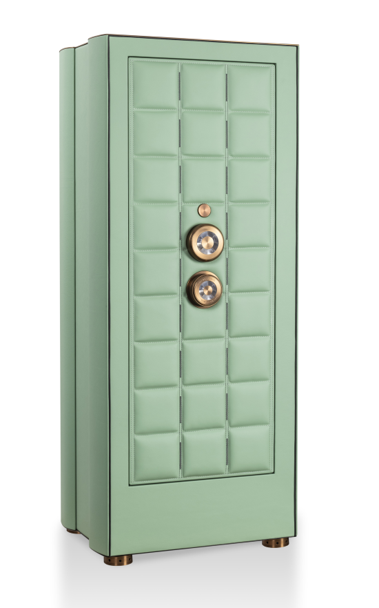 Entre 12 y 45 Cuadrados ORION cubren la puerta de la caja fuerte, cada uno de 15cm x 15cm y tapizado hasta una altura de 2cm.