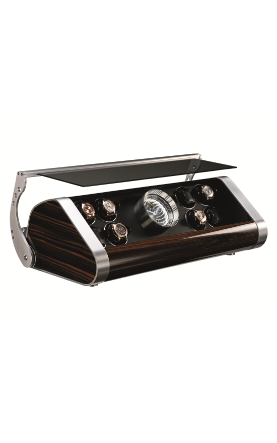Las líneas dinámicas de acento de acero inoxidable en cada lado y su frente biselado crean un escenario espectacular para la colección de relojes del propietario.
