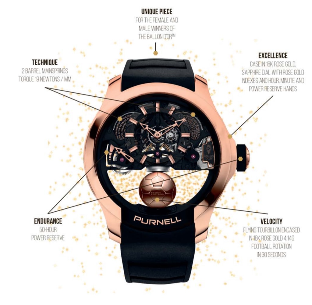 El tourbillón flotante propio de Purnell, alojado en una esfera de cristal perfectamente redonda, flota en una burbuja. La ilusión es una obra maestra visual, que recuerda a la inquietante belleza de las medusas, de ahí el nombre de la colección.